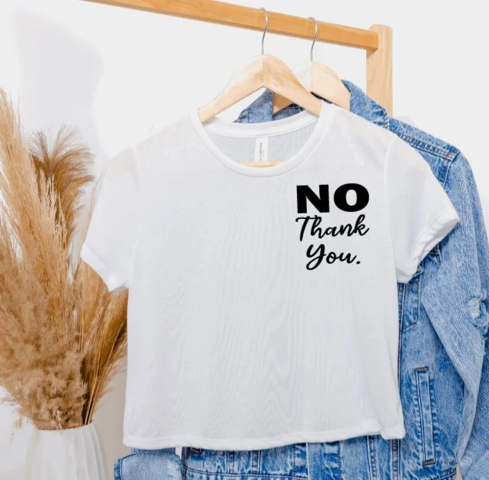 NO Thank You Crop Top/Minimalist Graphic Shirt/Sarcasm Tees/Sassy Crop Top/No Thanks Shirt/No Thanks crop top/funny sayings shirt/funny tee